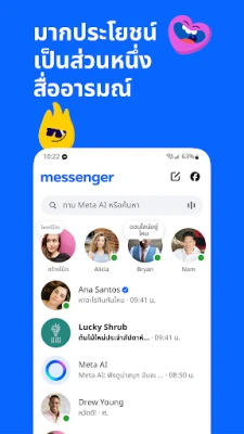 Messenger ให้คุณเชื่อมต่อกับเพื่อนและครอบครัวได้อย่างง่ายดาย ส่งข้อความฟรี สื่อสารกับใครก็ได้ในทุกที่ สำรวจสิ่งที่น่าสนใจ สร้างคอมมูนิตี้ และแบ่งปันความรู้สึกผ่านรูปแบบที่หลากหลายในแอพเดียว